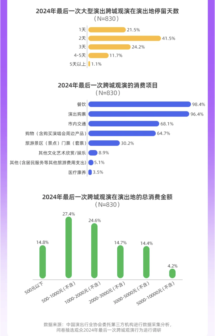 中国献艺行业协会的探询浮现,2024年跨城插足演唱会等大型献艺的不雅众,接近或者会在献艺地停留至少2天,三分之一的破钞杰出2000元。