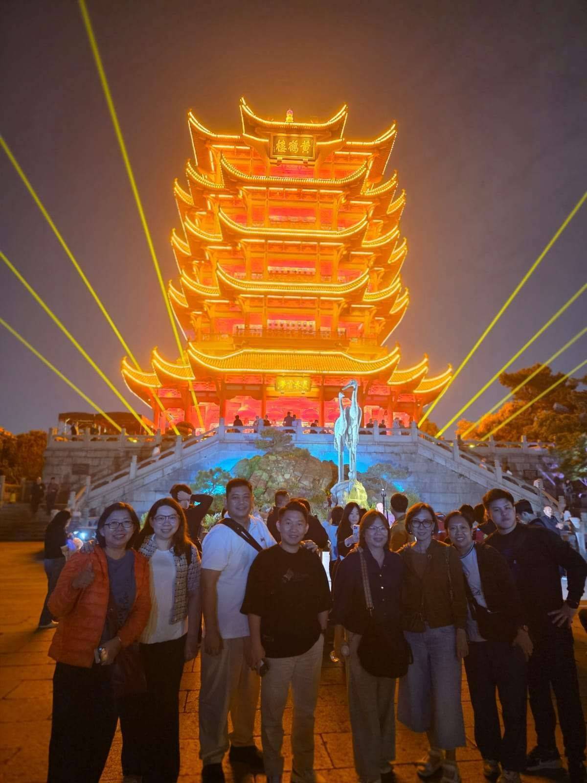 印尼游客打卡夜上黄鹤楼。旅行社供图