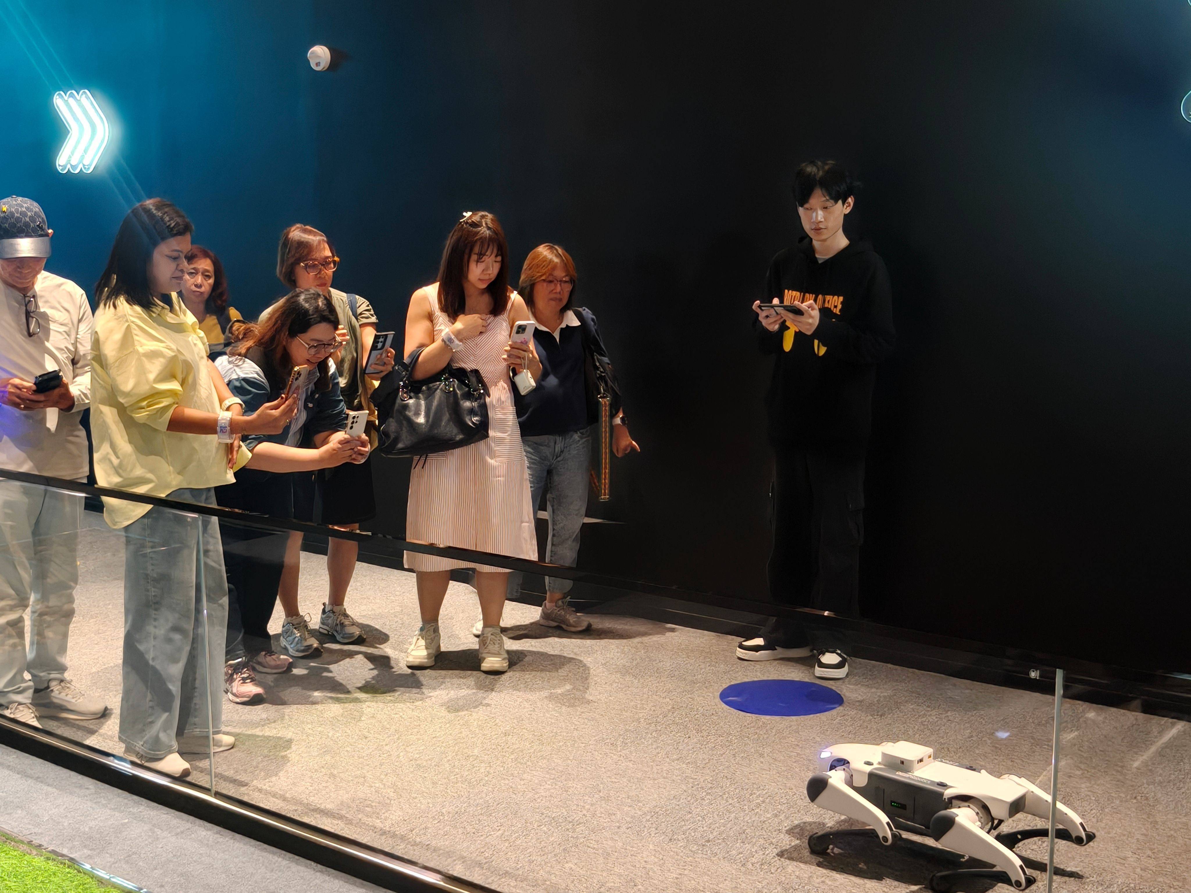印尼游客与机器狗互动。