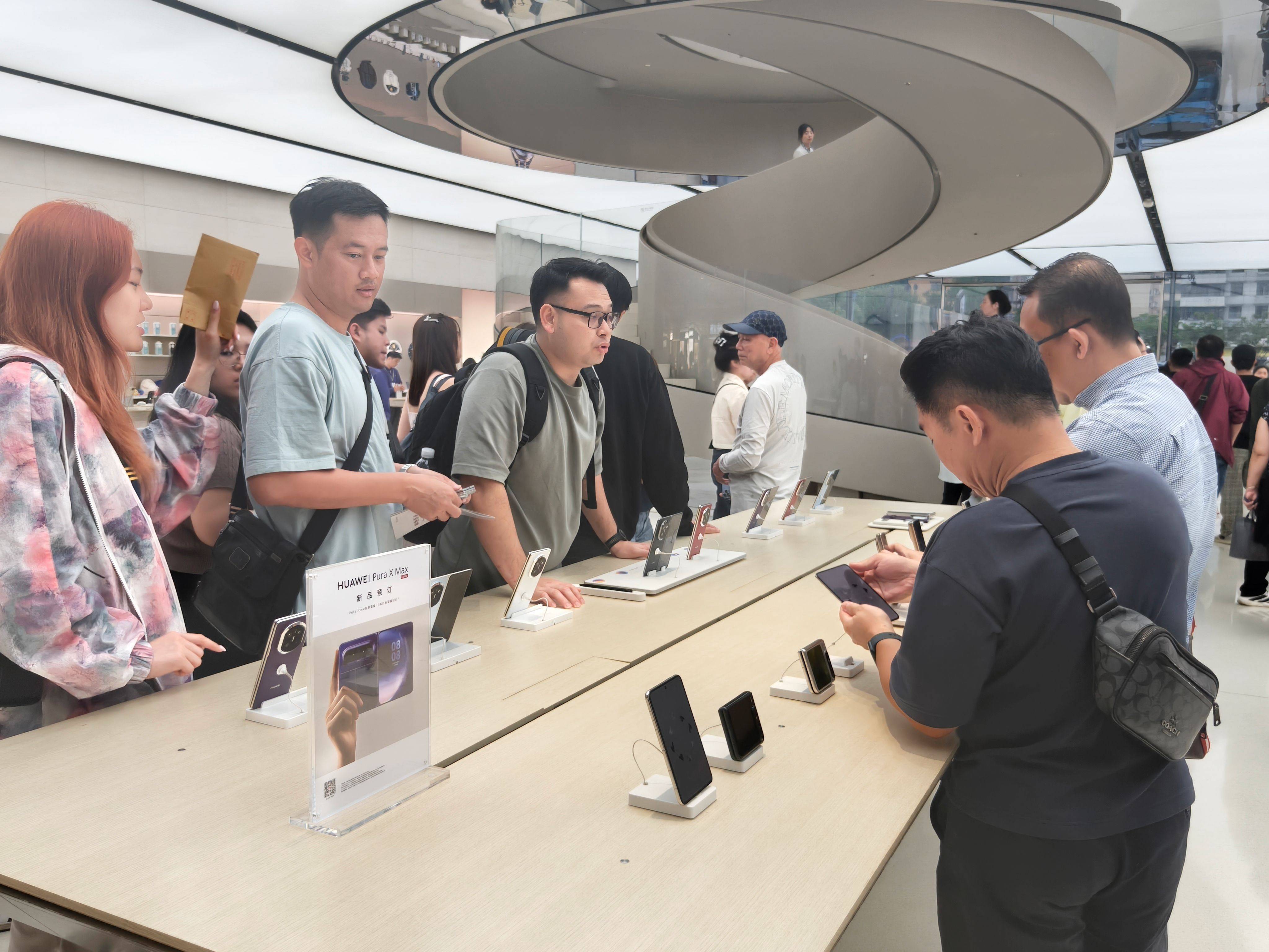印尼游客在武商梦期间体验华为手机。