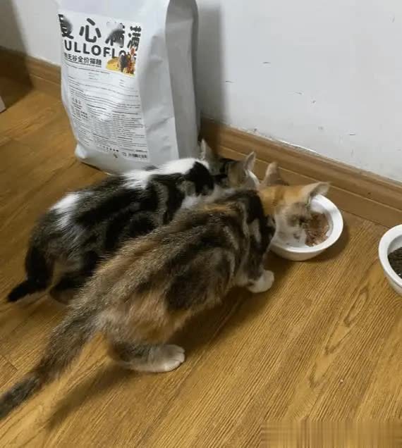 小猫们吃得狼吞虎咽,吃完后还眼巴巴地望着密斯姐,那轸恤的姿色仿佛在说:“再给咱们少许吧,咱们好饿。”