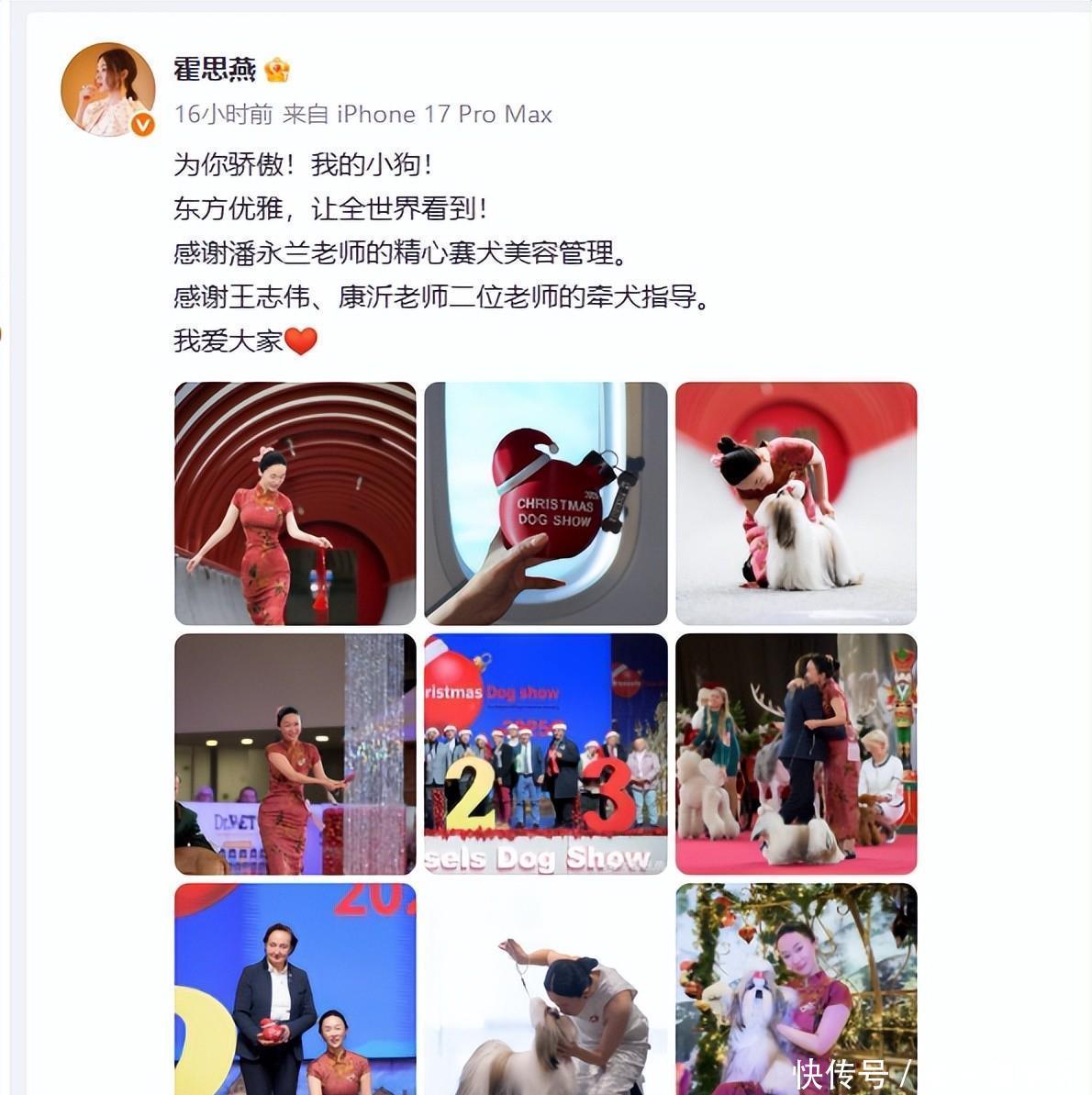 12月20日晚欧洲杯app,霍念念燕身着旗袍率领西施爱犬,参加了第135届比利时布鲁塞尔海外犬展并得胜夺冠,冲上微博热搜。