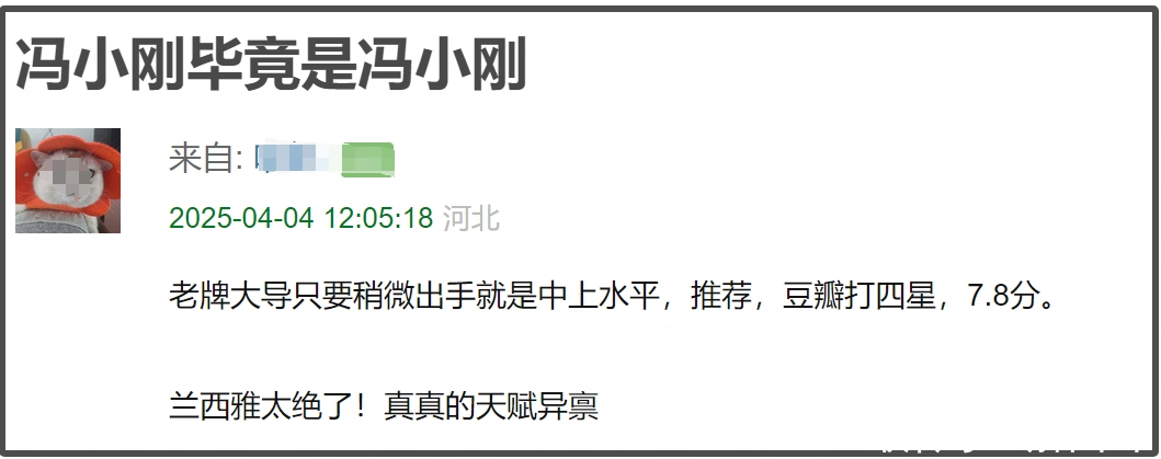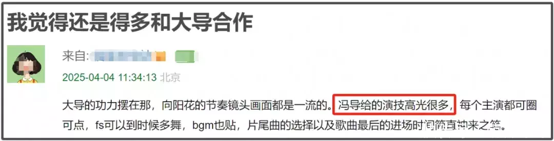 但是,不雅众们在看完《曙光·花》之后却纷繁推奖导演讲故事的智商。从不雅众反应的影评中大略看出,《曙光·花》的好评主要汇集在导演身上,该片的节律、镜头画面都尚可,冯小刚导演留住了一众演员的演技高光技艺,让每一位演员都能在他的影片中展现魔力。