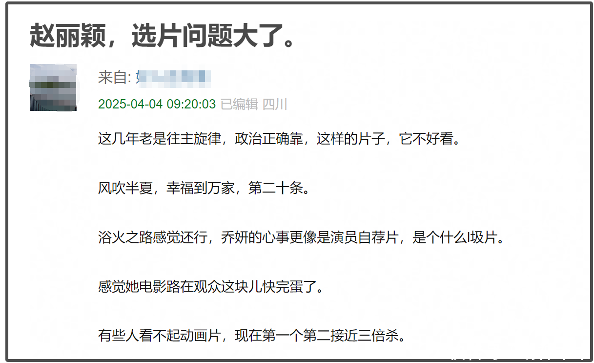 赵丽颖近些年一直往主旋律上走,但是演技实力跟不上,导致证据模式化,无法演绎深线索花样,光看预报就知说念会怎样演,不少网友都认为此次亦然纯正为了冲奖。由此可见,该片险些弗成能成黑马了。