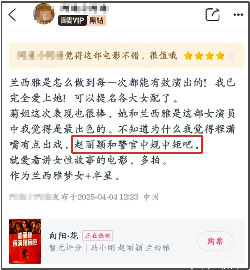 关于演员的饰演,行为影片一番女主的赵丽颖得益的评价并不高,以至不错说吐槽许多。她在影片中的证据中规中矩,莫得让东说念主目前一亮的饰演,但在大导的调教下饰演也不至于让不雅众出戏。反而是破碎让东说念主交口推奖,其中王菊和兰西雅的证据最为隆起,惊艳了许多不雅众。