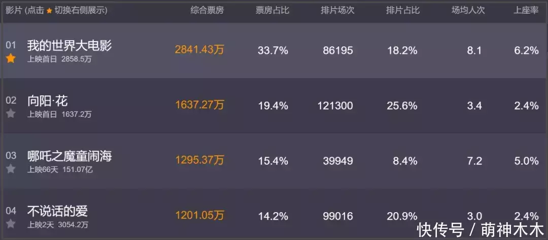 左证票房情况不错看到,抛开好意思国片《我的宇宙大电影》、两部动画电影和重映的《浓烈》除外,四部真东说念主主演的新片占据了票房榜靠前的位置,其中由肖央和春夏等主演的影片《阳光映照芳华里》成为了垫底选手,票房成绩目不忍见。