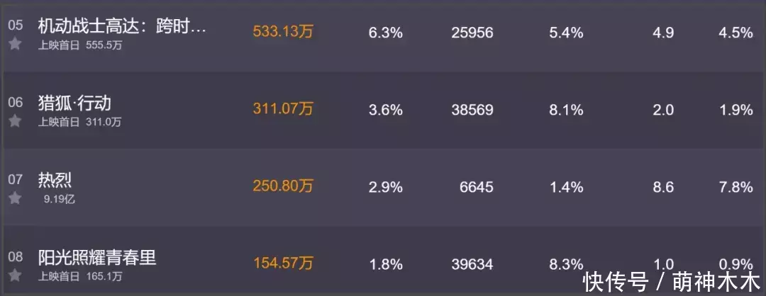 票房榜第六名的《猎狐·步履》在票房成绩上比《阳光映照芳华里》好一些,但是在口碑成绩上两者都是不异的差评如潮。